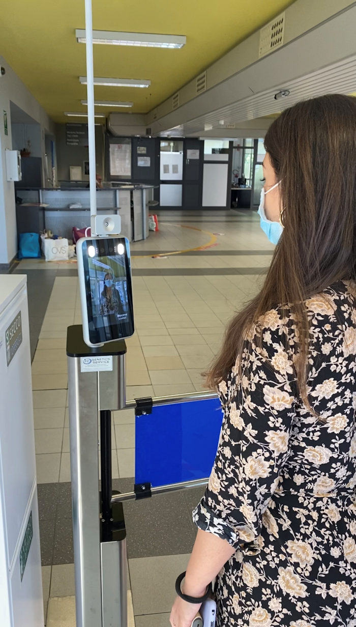 Il paziente dovrà avvicinarsi alla telecamera del termoscanner sino a che la sagoma che circonderà il viso non diventerà verde. A quel punto i tornelli si apriranno solo se la sua temperatura corporea sarà inferiore ai 37,5°C e indosserà correttamente la mascherina. Se il paziente, per errore, non avrà la mascherina sul viso sarà una voce guida a ricordargli che la deve mettere.