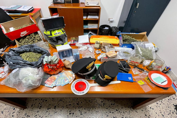 Individuati a seguito dell’attività d’indagine i possibili autori del reato, anche grazie all’analisi delle immagini della video-sorveglianza, i militari hanno concordato con la Procura della Repubblica di Oristano, d’effettuare una perquisizione nel corso della quale, oltre al materiale precedentemente asportato dal veicolo, sono stati rinvenuti, suddivisi in svariate confezioni pronte per lo smercio al dettaglio 1 chilo e 143 grammi di Marijuana, 83 gr di Cocaina, 55 gr di Eroina, 207 grammi di Hascisc e una pasticca di Ecstasy. E Nel corso della medesima operazione, sono stati sequestrati 23 petardi, una bomba carta, 2.930 euro in banconote da vario taglio, materiale atto al confezionamento dello stupefacente ed un bilancino elettronico di precisione.