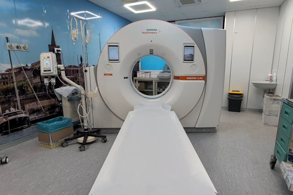 Una TC Siemens Somatom X.cite – Attraverso Fondi PNRR (Linea di investimento M6C2: investimento 1.1 Ammodernamento del parco tecnologico e digitale ospedaliero – sub investimento 1.1.2 - grandi apparecchiature sanitarie), con un investimento di circa 570.000 € è stato acquistato un sistema di ultima generazione progettato per massimizzare qualità d’immagine, comfort del paziente e rapidità operativa. Grazie al detector StellarInfinity, al tunnel da 82 cm e alle tecnologie di riduzione dose, la TC offre immagini ad alta definizione anche in pazienti complessi, migliorando accuratezza diagnostica e flussi di lavoro. L’introduzione della Somatom X.cite potenzia la capacità del servizio di gestire elevati volumi, urgenze e casi ad alta complessità clinica.