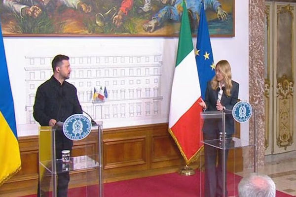 Una Ue spaccata sarebbe un regalo a Mosca, ha specificato la presidente del Consiglio. “Se esistono le condizioni per lavorare ad una pace giusta, lo dobbiamo alla tenacia del popolo ucraino e al convinto sostegno” dell'Occidente. Lo dice la premier Giorgia Meloni, ricevendo a palazzo Chigi il presidente ucraino Zelensky. “La posizione dell'Italia e dell'Europa è rimasta sempre la stessa, al fianco di Kiev: è un dovere morale e una necessità strategica, in gioco è anche la sicurezza dell'Europa” dice la premier.