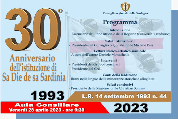 Cagliari, 27 Apr 2023 – A trent’anni dalla sua istituzione e per la prima volta dopo l’emergenza legata al Covid, Sa die de Sa Sardigna si…