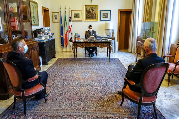 Cagliari, 25 Ott 2021 - Il Presidente della Regione Christian Solinas ha ricevuto a Villa Devoto l’Ammiraglio Edoardo Compiani, che a breve lascerà l’incarico di Comandante…