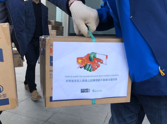 Cagliari, 14 Mar 2020 - Un ponte di solidarietà tra la Sardegna e la Cina per affrontare l’emergenza Covid-19. Quattro tonnellate di materiale medicale, 1.800 indumenti…
